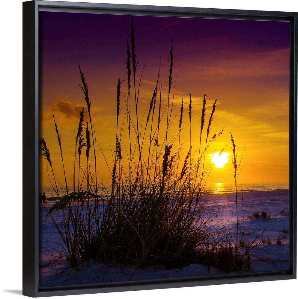 <p>Sunset on Siesta Key, silhouette of grasses from inches above the sand.</p>