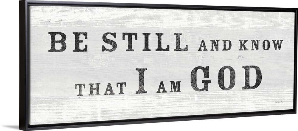 <p>"Be Still And Know That I Am God" against a light gray shiplap background.</p>