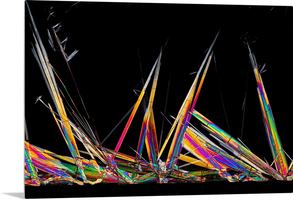 <p>Sildenafil citrate drug. Polarized light micrograph of crystals of the drug sildenafil citrate, used to treat erectile dysfunction and pulmonary arterial hypertension. Its trade names include Viagra and Revatio. It is a vasoactive drug that inhibits the breakdown of a chemical that regulates blood flow to the penis. As an antihypertensive agent it is used to treat pulmonary arterial hypertension (an increase in blood pressure in the lung blood vessels). Field of view size: 2.97 x 4.45 millimetres.</p>