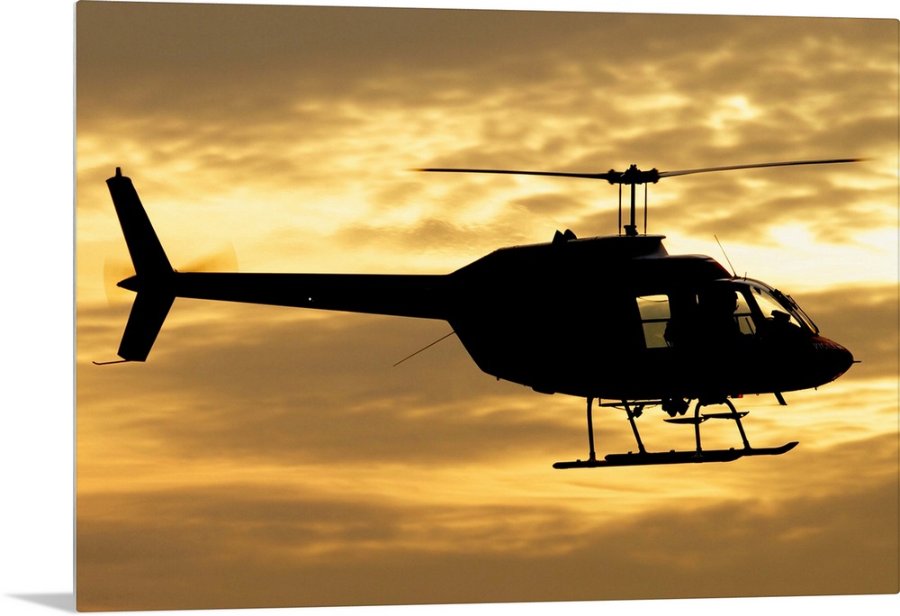 <p>Silhouette of a Bell 206 utility helicopter of Italy's Vigili del Fuoco flying over Italy.</p>