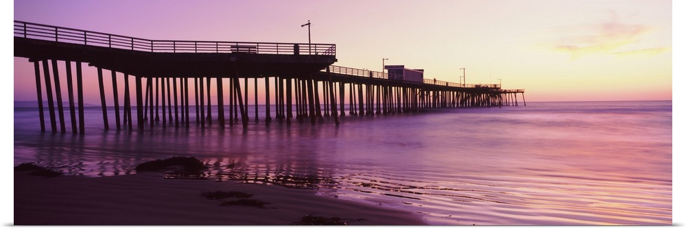 <p>Silhouette of a pier at dusk, Pismo Pier, Pismo Beach, San Luis Obispo County, California</p>