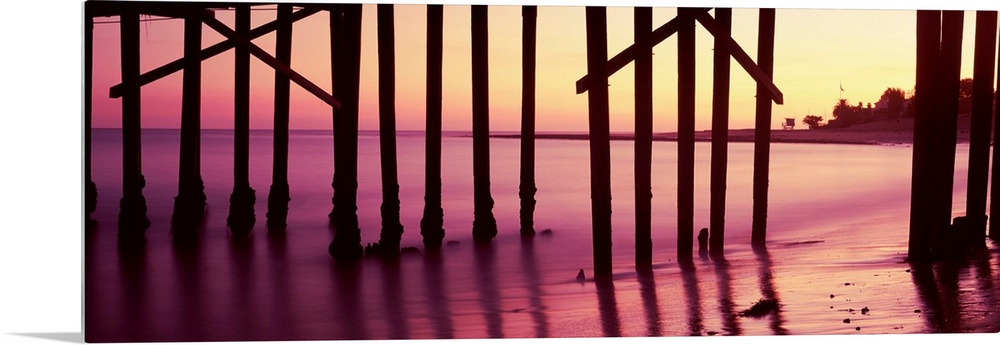 <p>Silhouette of a pier at sunrise, Malibu Pier, Malibu, Los Angeles County, California, USA</p>