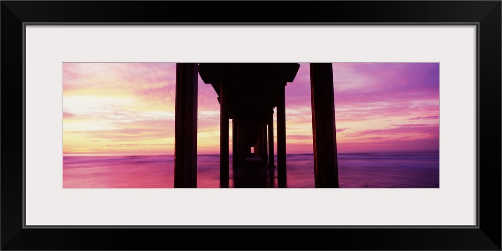 <p>Silhouette of a pier in the Pacific Ocean at sunset, Scripps Pier, La Jolla, San Diego, California, USA</p>
