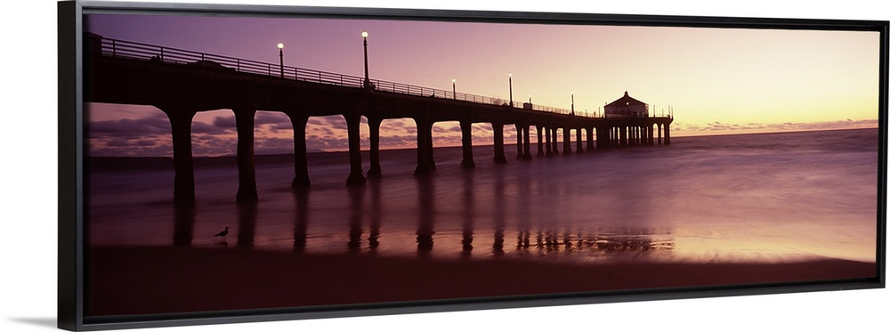 <p>Silhouette of a pier, Manhattan Beach Pier, Manhattan Beach, Los Angeles County, California, USA</p>