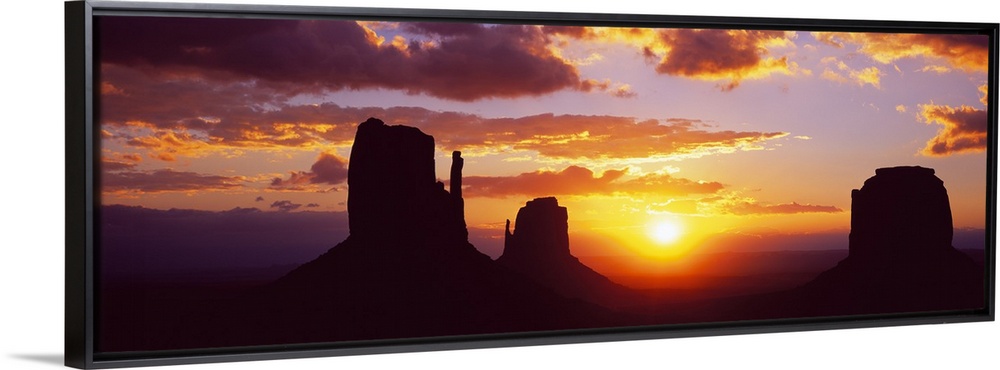 <p>Silhouette of buttes at sunset, Monument Valley, Utah, USA</p>
