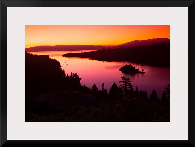<p>Silhouette of island in a lake, Fannette Island, Emerald Bay, Lake Tahoe, California, USA</p>