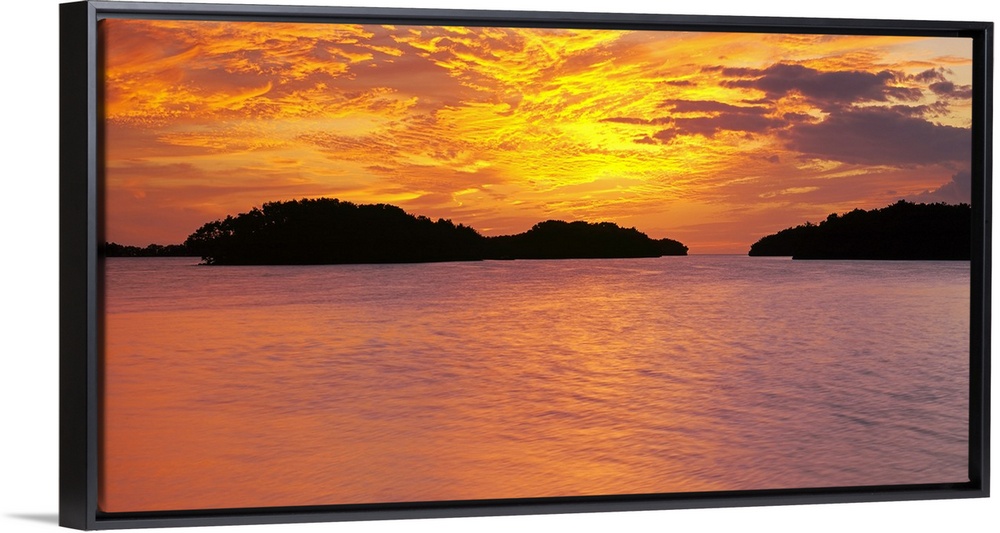 <p>Large canvas photo of a vibrant sunset reflected in calm waters.</p>
