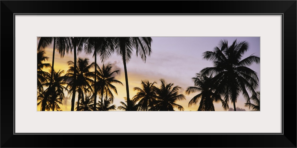 <p>A decorative wall accent of tropical trees photographed a twilight on a panoramic shaped canvas.</p>
