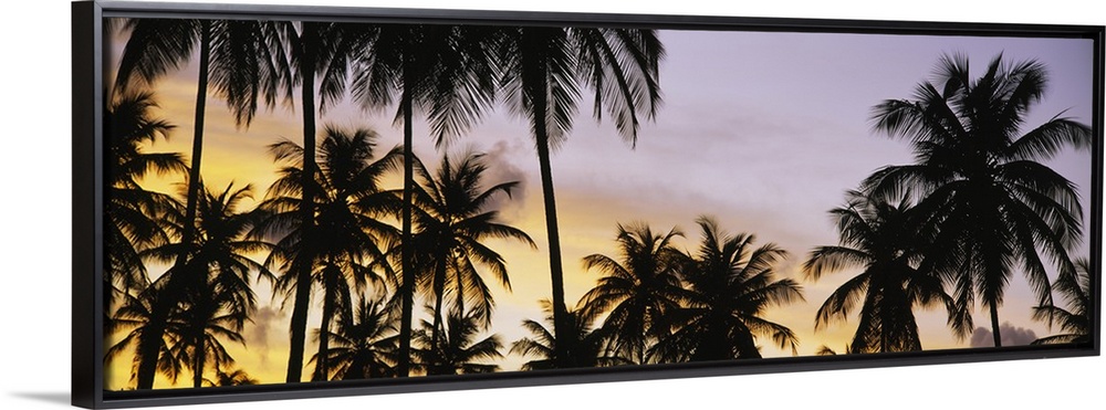 <p>A decorative wall accent of tropical trees photographed a twilight on a panoramic shaped canvas.</p>