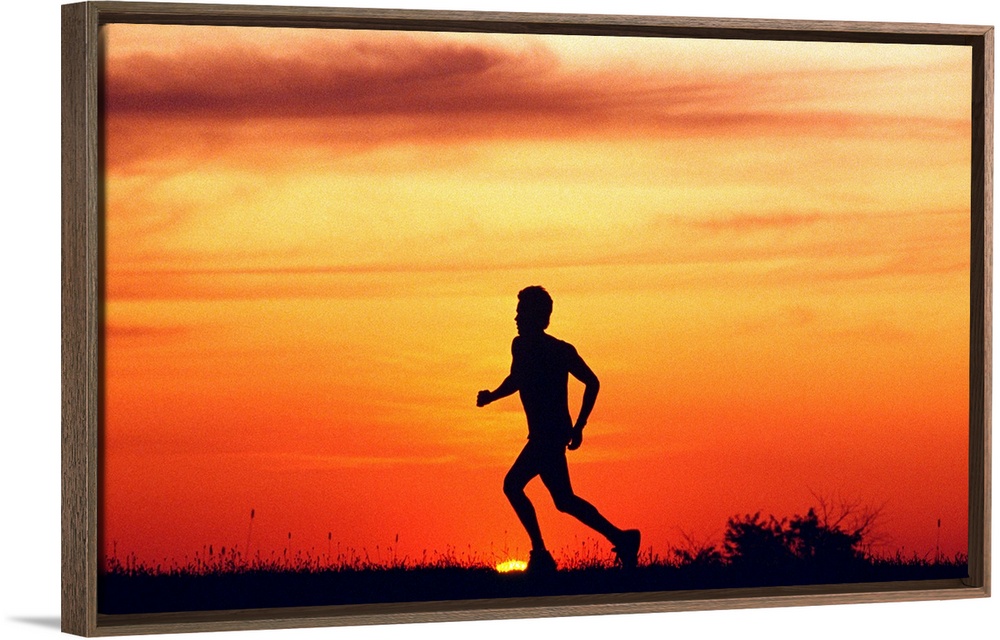 <p>Silhouette of runner on ridge at sunset</p>