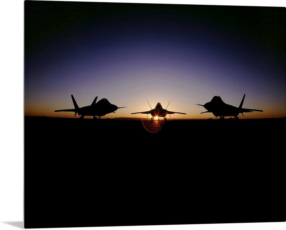<p>Silhouette of the F-22 Raptor, developed at Aeronautical Systems Center, Wright-Patterson Air Force Base, Ohio, is the replacement for the F-15 Eagle air-superiority fighter and will become operational this century. It combines stealth design with the supersonic, highly maneuverable, dual-engine, long-range requirements of an air-to-air fighter, and it also will have an inherit air-to-ground capability, if needed.</p>