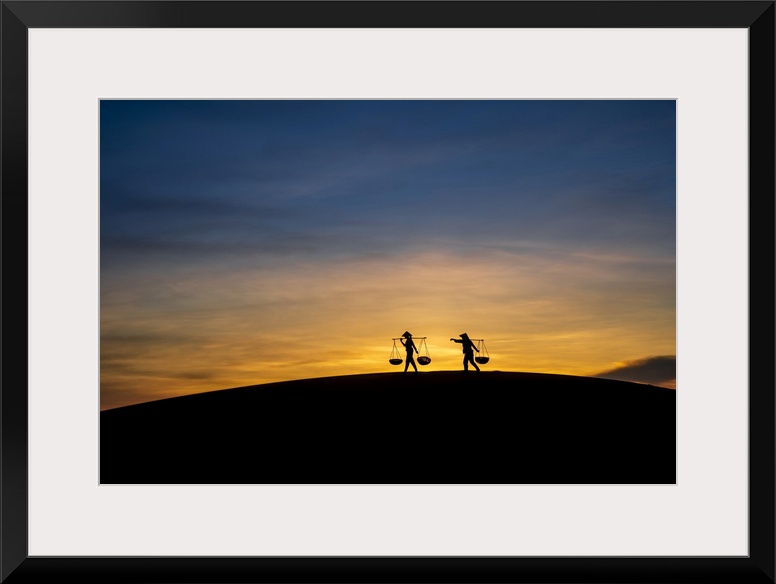 <p>Silhouette of two people carrying baskets at sunset, Nam Cuong sand hill in Ninh Thuan, Vietnam, Indochina, Southeast Asia, Asia</p>
