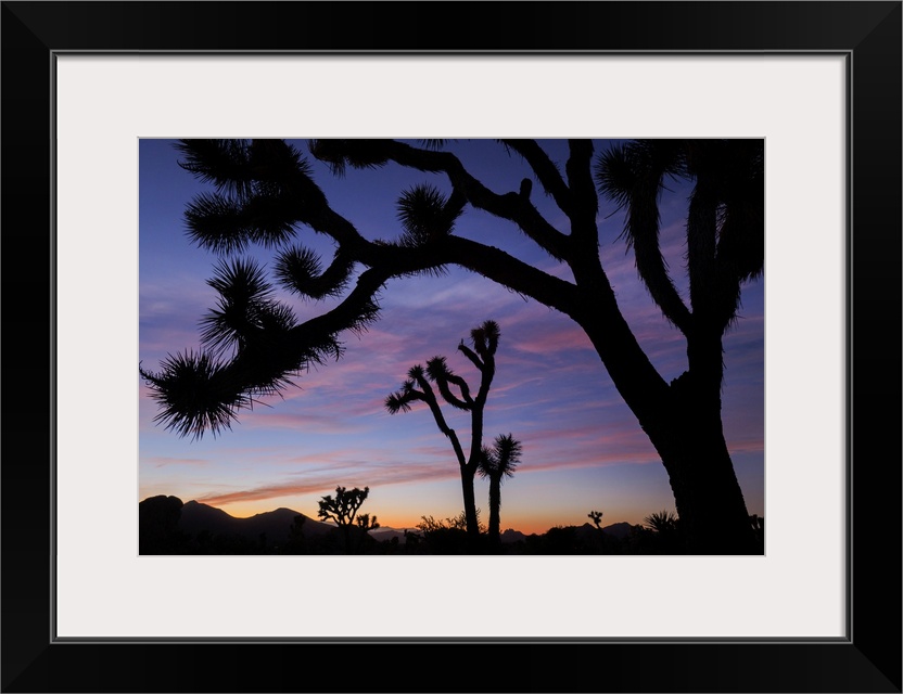 <p>Usa, California, Joshua Tree National Park. Silhouettes of Joshua trees at sunset.</p>
