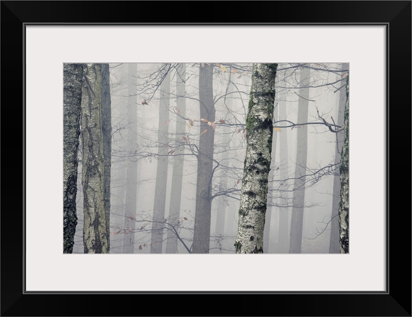 <p>Trees in mist at dawn</p>
