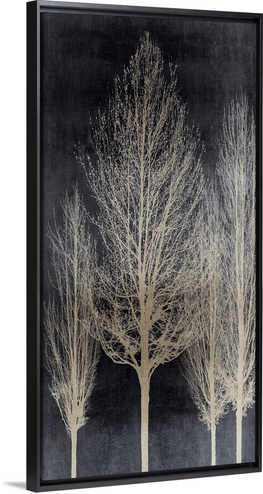 <p>Decorative artwork featuring an aged silver silhouette of leafless trees over a distressed background.</p>