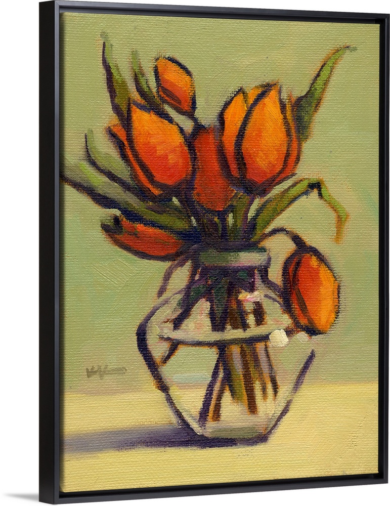 Art Contemporary and Modern Contemporary Art Plants and Flowers Florals Tulip Konnie Kim Orange Wall Art Painting Still Life
