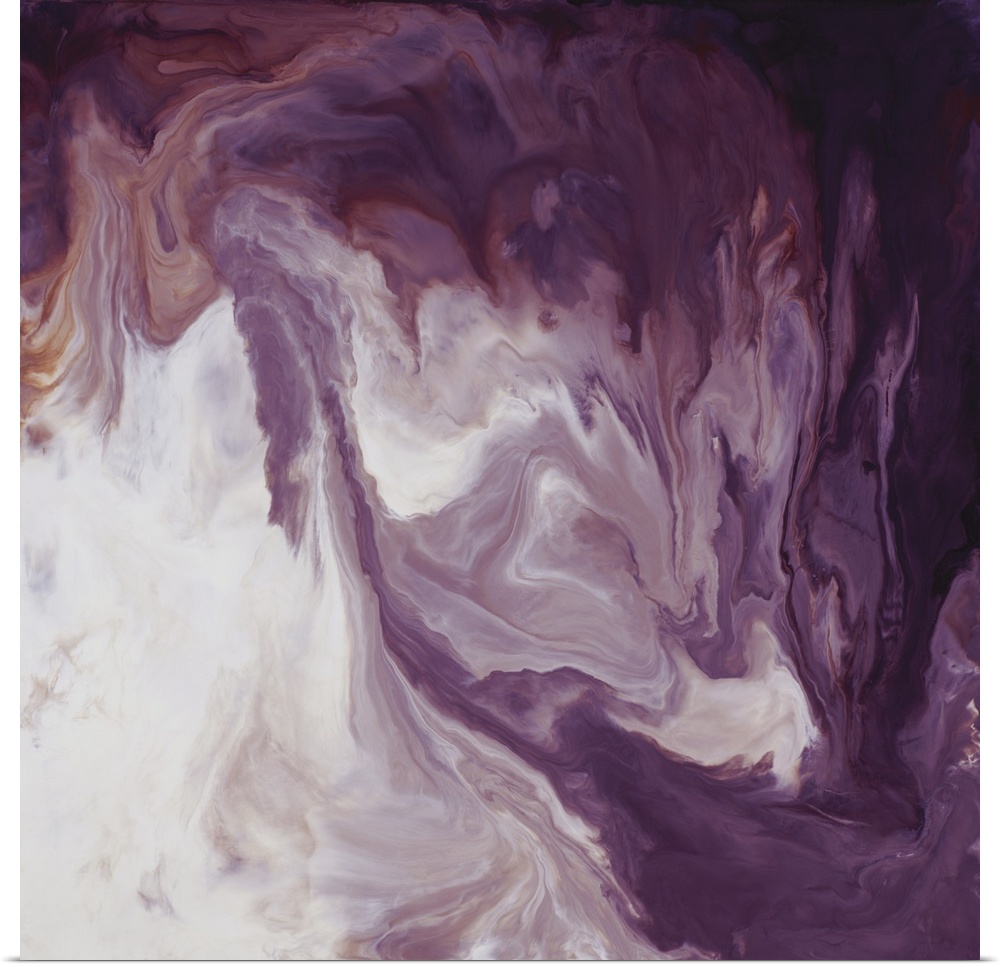 <p>Square abstract art with deep purple hues running together with white hues creating a marbled effect.</p>