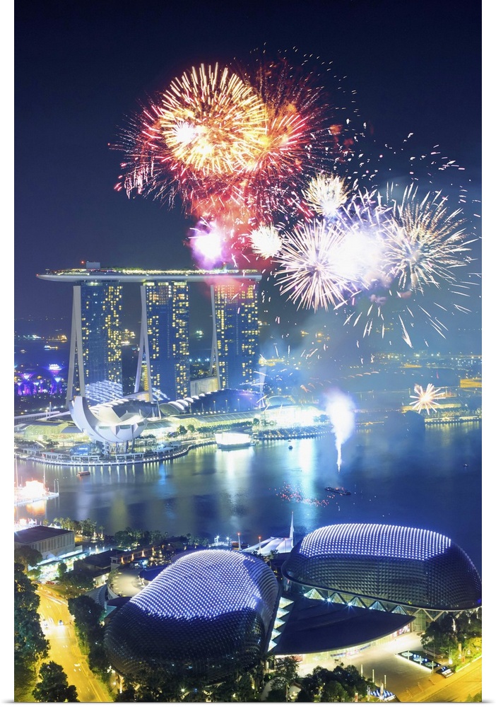 <p>Singapore, Singapore City, Chinese New Year fireworks at Singapore marina, Marina Bay Sands in the background.</p>
