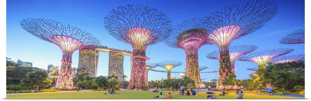 <p>Singapore, Singapore City, Marina Bay Sands and Gardens by the Bay trees.</p>