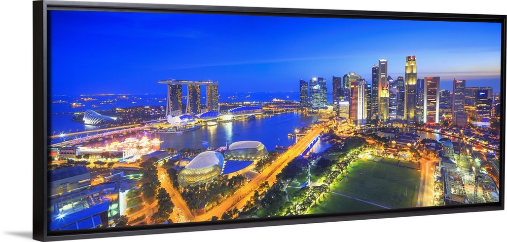 <p>Singapore, Singapore City, Singapore marina with Marina Bay Sands in the background at night.</p>