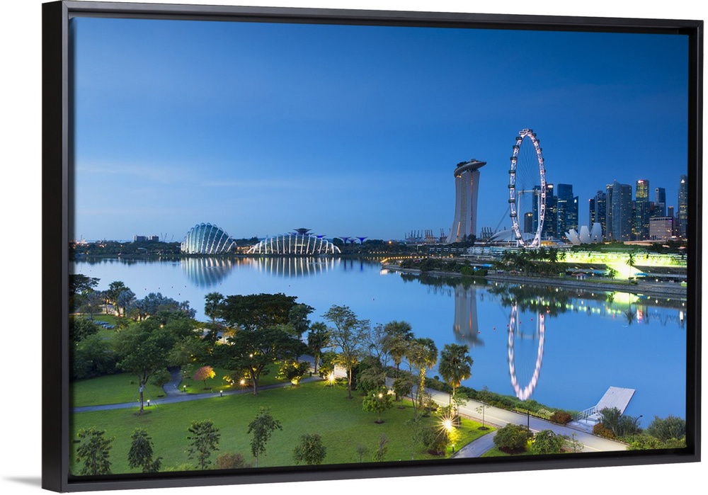 <p>View of Singapore Flyer, Marina Bay Sands Hotel and Gardens by the Bay at dawn, Singapore.</p>