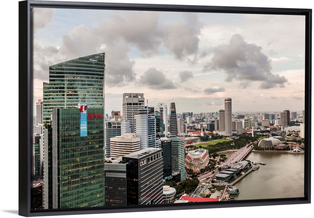 <p>Singapore, Singapore City, Marina Bay, view from LeVel 33 Rooftop Restaurant and Bar at Marina Bay Financial Centre Tower.</p>