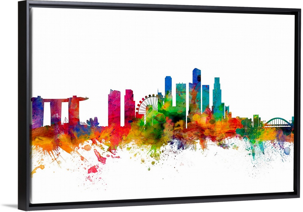 <p>Watercolor artwork of the Singapore skyline against a white background.</p>