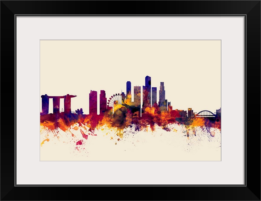 <p>Watercolor art print of the skyline of Singapore.</p>