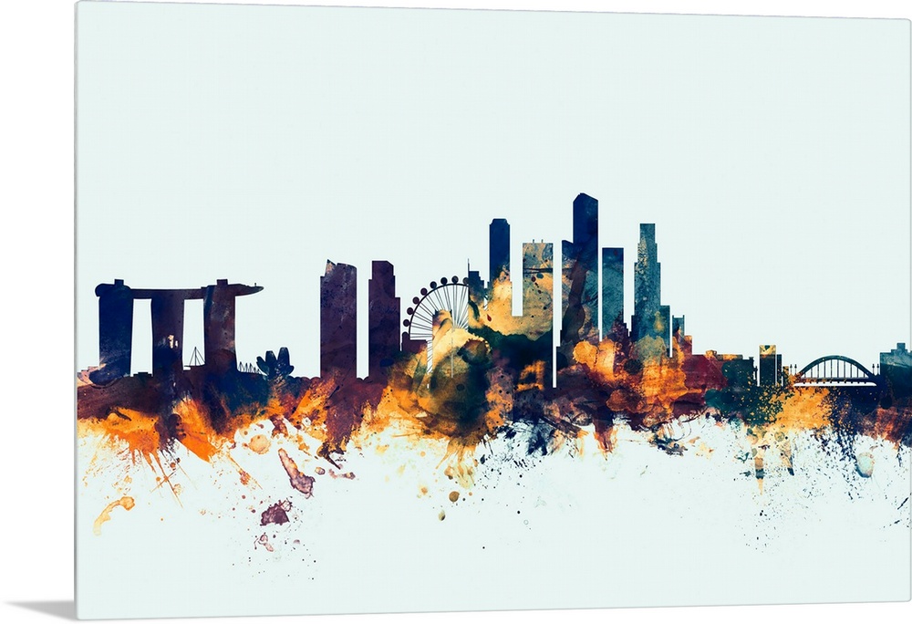 <p>Watercolor art print of the skyline of Singapore.</p>