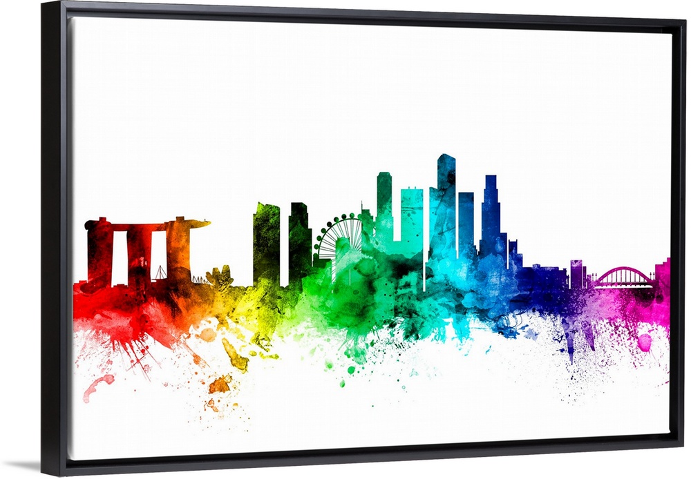 <p>Watercolor art print of the skyline of Singapore.</p>