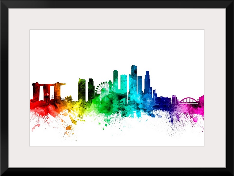 <p>Watercolor art print of the skyline of Singapore.</p>