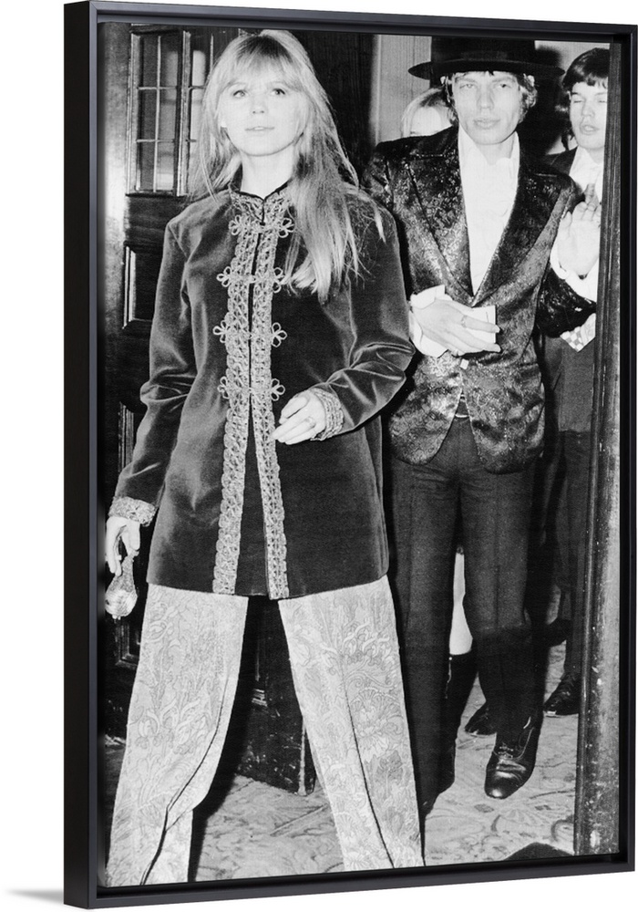 <p>Singer Mick Jagger, and his girlfriend Marianne Faithfull arrive at the Royal Opera House. They attended the gala premiere of 'Paradise Lost', featuring ballet stars Dame Margot Fonteyn and Rudolf Nureyev. Marianne wears a braided velvet tunic with wide floral pants and Mick sports a black sombrero and multi-colored embroidered jacket. Covent Garden, London, Feb, 23, 1967.</p>