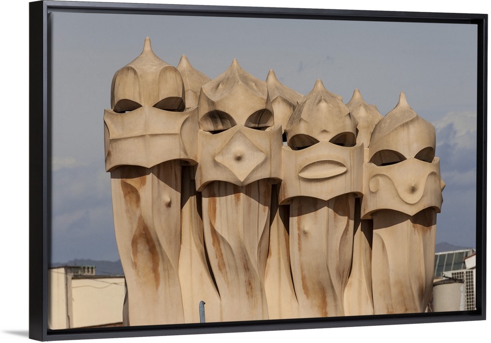 <p>Singing chimneys, The Pop Girls, on the roof of La Pedrera (Casa Mila), an apartment block on Passeig de Gracia, designed by Antonio Gaudi, UNESCO World Heritage Site, Barcelona, Catalunya, Spain, Europe.</p>