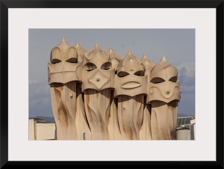 <p>Singing chimneys, The Pop Girls, on the roof of La Pedrera (Casa Mila), an apartment block on Passeig de Gracia, designed by Antonio Gaudi, UNESCO World Heritage Site, Barcelona, Catalunya, Spain, Europe.</p>