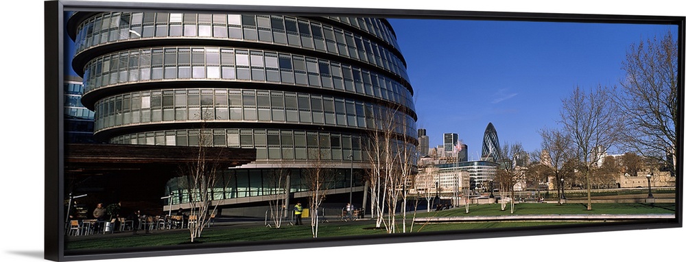 <p>Buildings in a city, Sir Norman Foster Building, London, England</p>