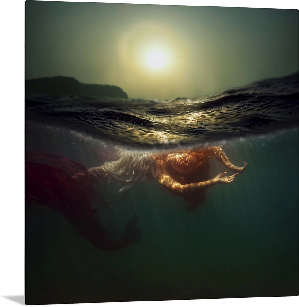 <p>Underwater photo of a woman swimming beneath the surface, resembling a mermaid.</p>