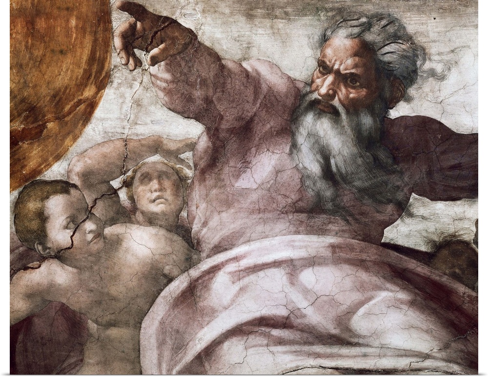 <p>Michelangelo (1475-1564). Sistine Chapel. 1508-1512. VATICAN CITY. Vatican Palaces. Detail of the vault. The Creation of the universe and the planets. Renaissance art. Cinquecento. Fresco. .. AISA/Everett Collection (10571)</p>