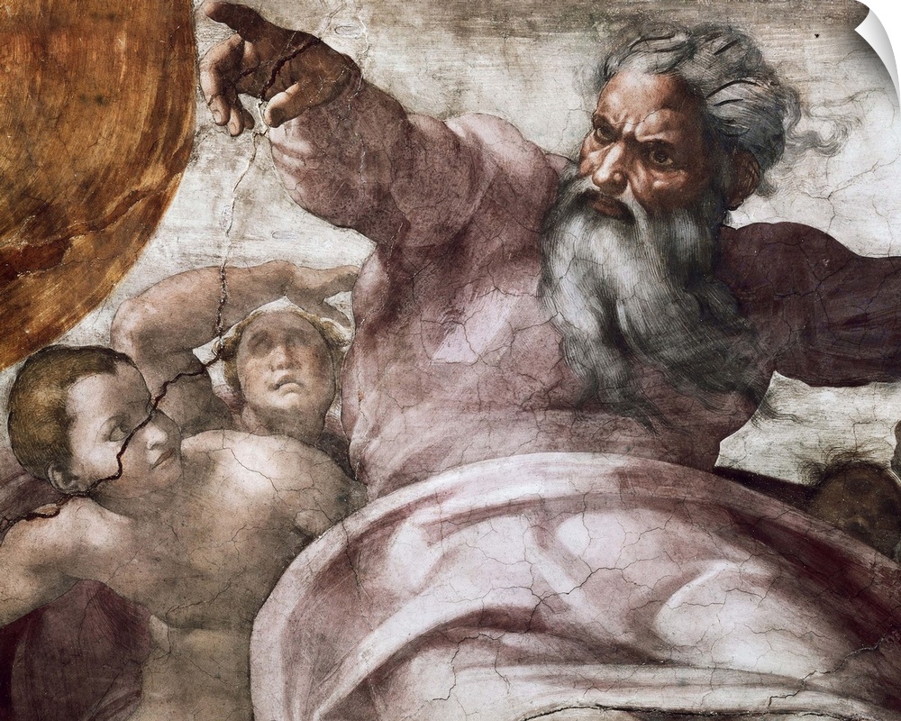 <p>Michelangelo (1475-1564). Sistine Chapel. 1508-1512. VATICAN CITY. Vatican Palaces. Detail of the vault. The Creation of the universe and the planets. Renaissance art. Cinquecento. Fresco. .. AISA/Everett Collection (10571)</p>