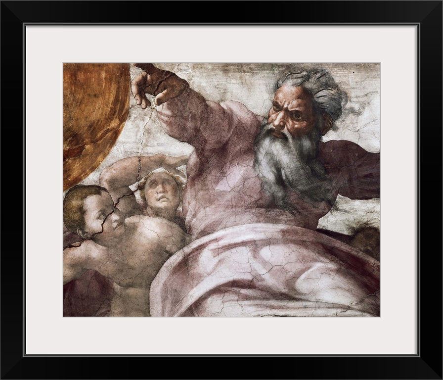 <p>Michelangelo (1475-1564). Sistine Chapel. 1508-1512. VATICAN CITY. Vatican Palaces. Detail of the vault. The Creation of the universe and the planets. Renaissance art. Cinquecento. Fresco. .. AISA/Everett Collection (10571)</p>