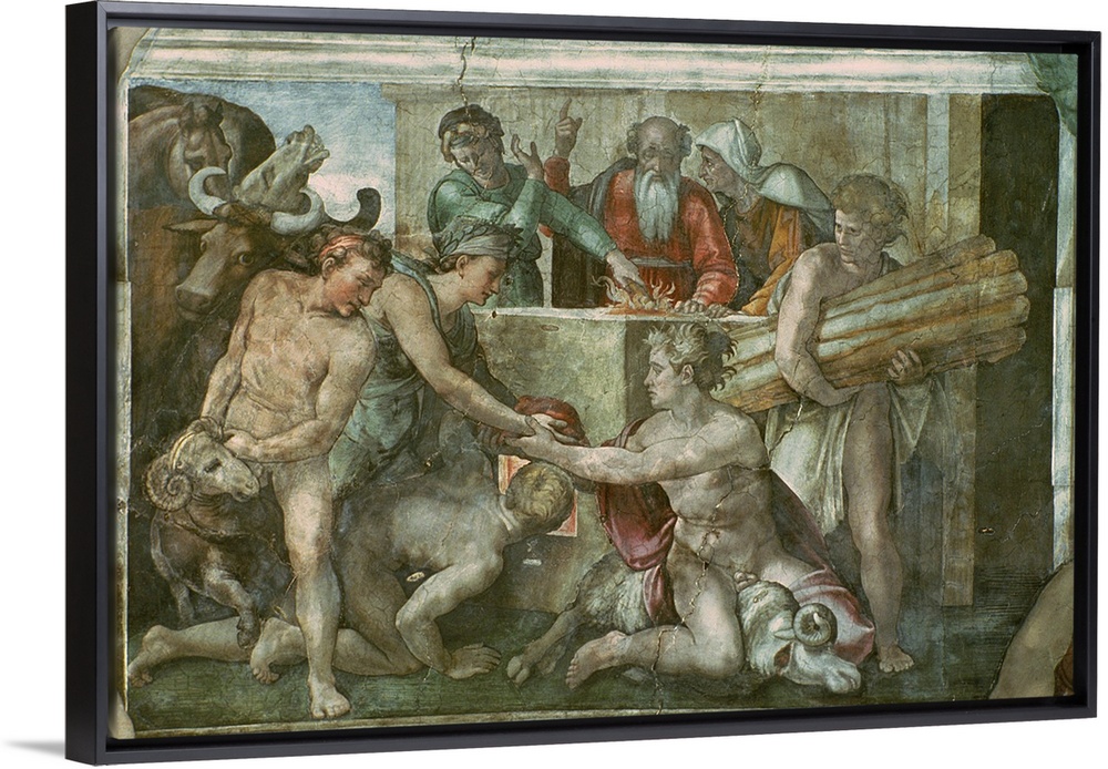 <p>BAL57568 Sistine Chapel Ceiling: Noah After the Flood (pre restoration) by Buonarroti, Michelangelo (1475-1564); Fresco; Vatican Museums and Galleries, Vatican City, Italy; Italian, out of copyright</p>