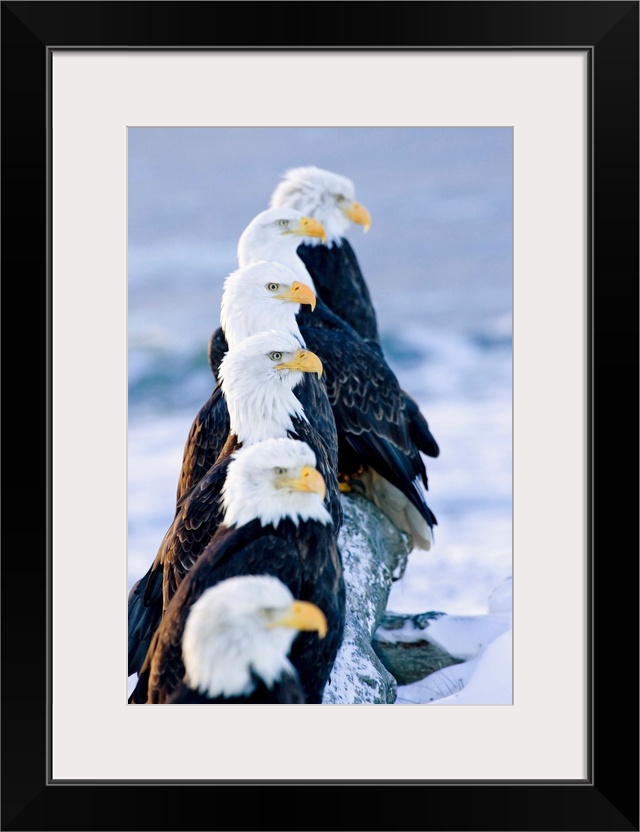 <p>Six Bald Eagles On Log, Homer Spit Kachemak Bay, Kenai Peninsula, Alaska</p>