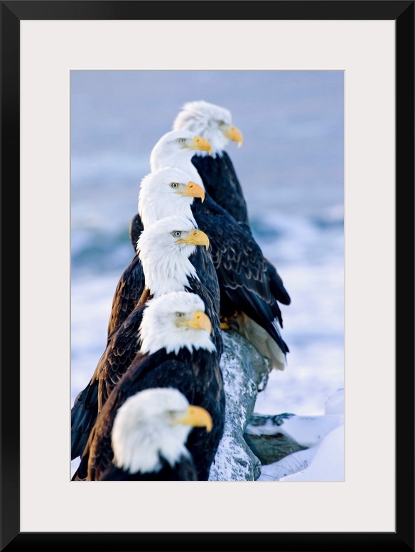 <p>Six Bald Eagles On Log, Homer Spit Kachemak Bay, Kenai Peninsula, Alaska</p>
