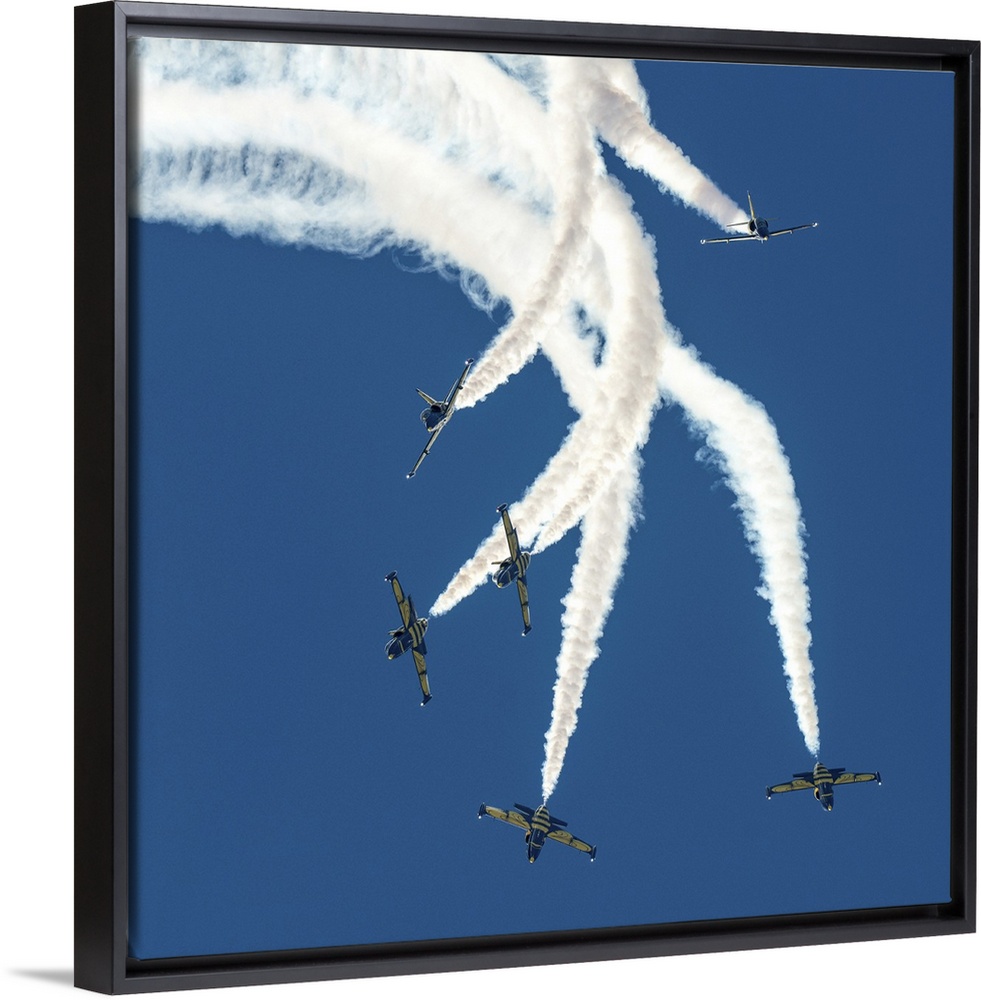 <p>Six L-39C's of the Baltic Bees aerobatic team performing at an airshow in Iran.</p>