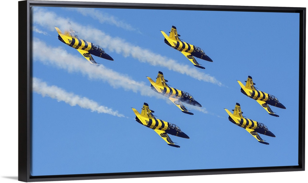 <p>Six L-39C's of the Baltic Bees aerobatic team performing at an airshow in Iran.</p>