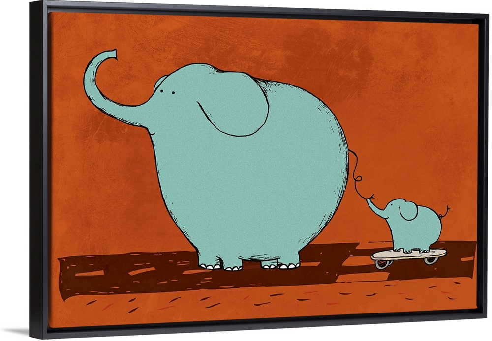 <p>Large Elephant and baby elephant on a skateboard children juvenile</p>