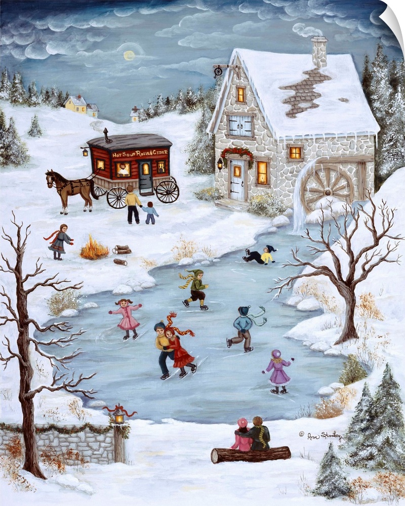 Art Contemporary Art Landscapes Folk Art Four Seasons Winter Landscapes Villages Watermill Painting Ann Stookey