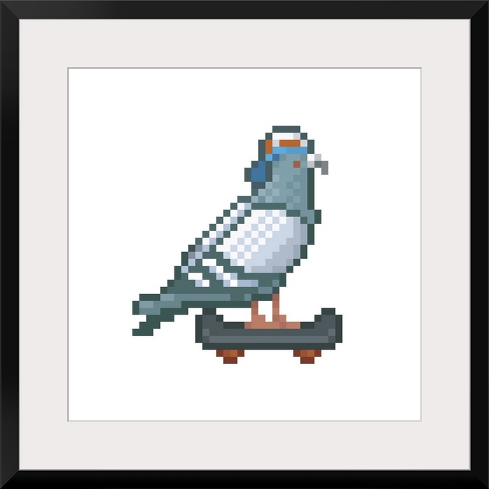 <p>Skating pigeon, pixel art illustration.</p>