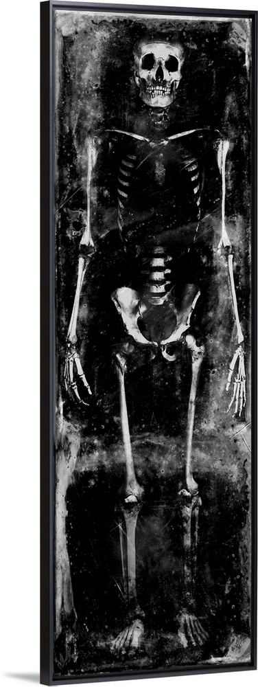 <p>Tall panel illustration of a skeleton in black and white.</p>