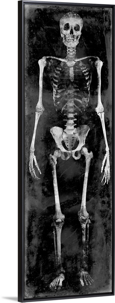 <p>Tall panel illustration of a skeleton in black and white.</p>