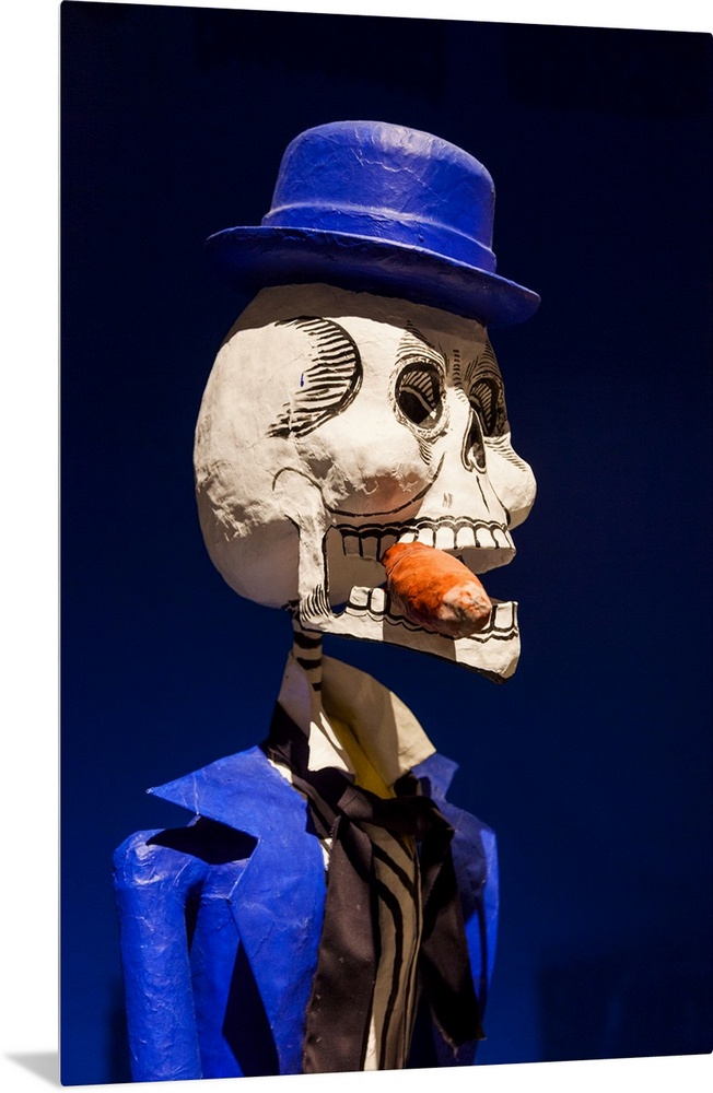<p>Close-up of a skeleton statue on the event of mexican day of the dead, moesgard museum, aarhus-hojbjerg, jutland, denmark.</p>